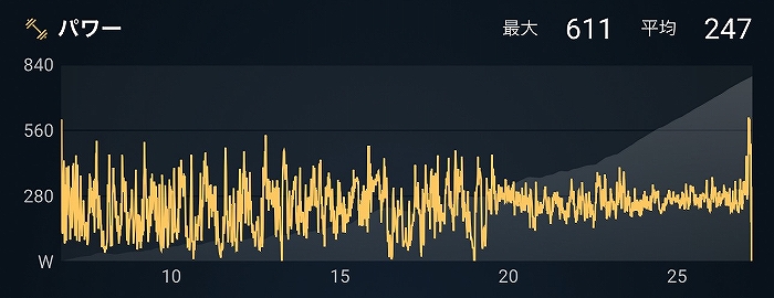 後半は集団もばらけて勾配も一定なのでパワーも均一です。
