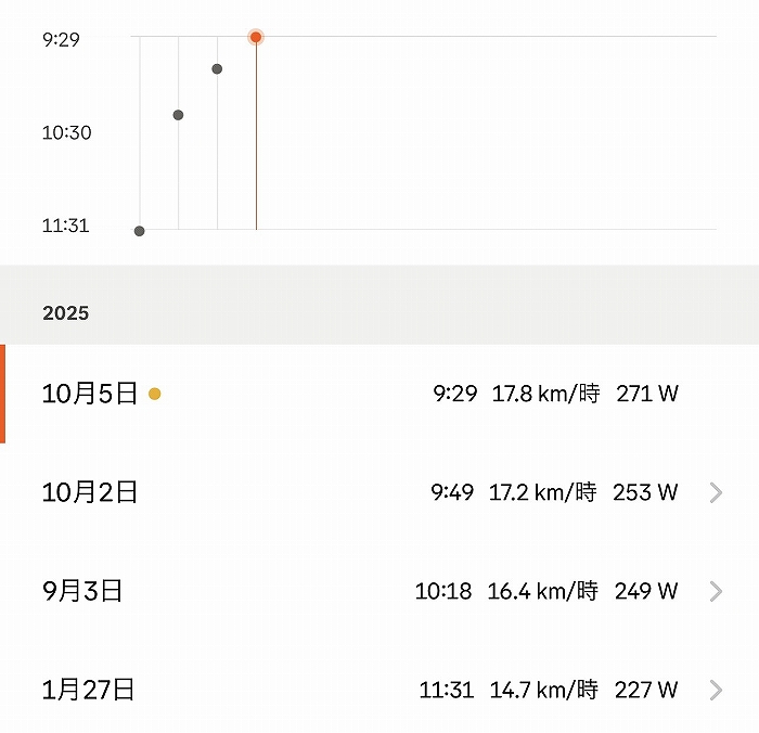 また、後半ゴールにむけてパワーを上げれている点もペース配分成功といえます。