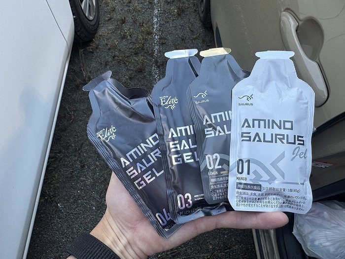 スタート前にアミノサウルスの全種類と後半に強いトップスピードを摂取。