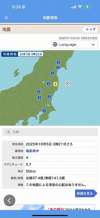 やっと寝れたと思ったら地震で起きる!!