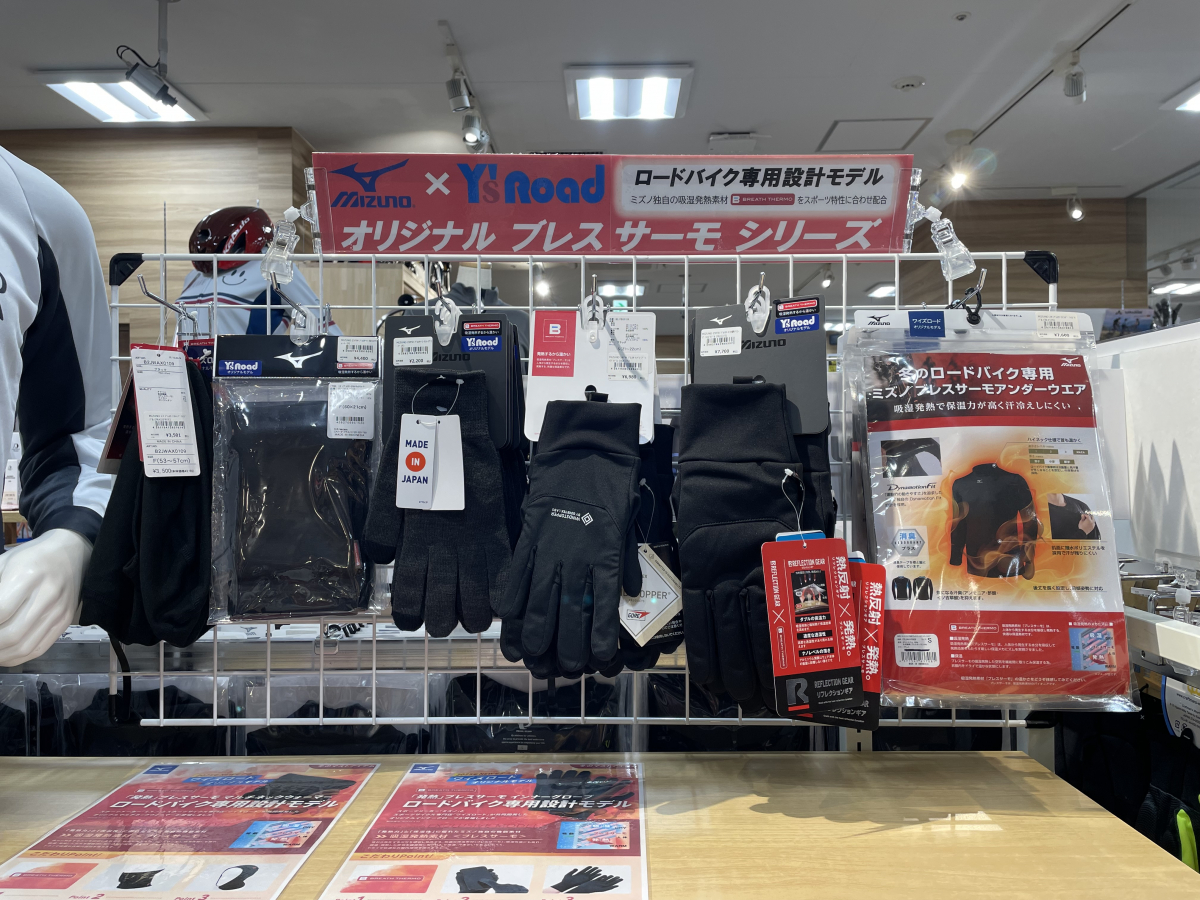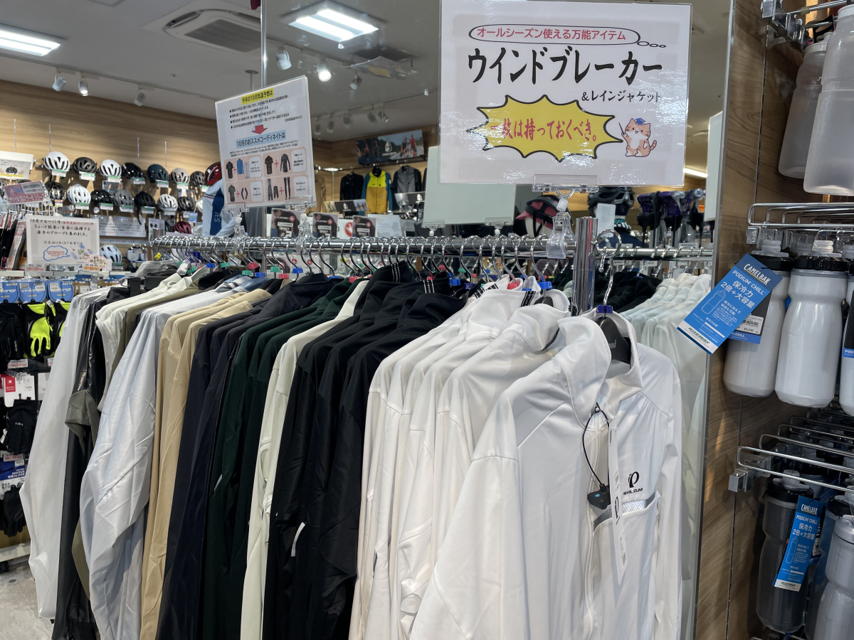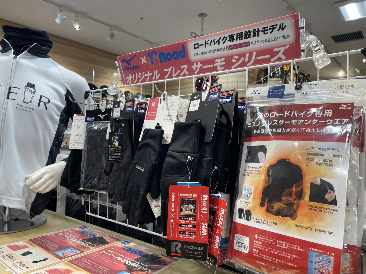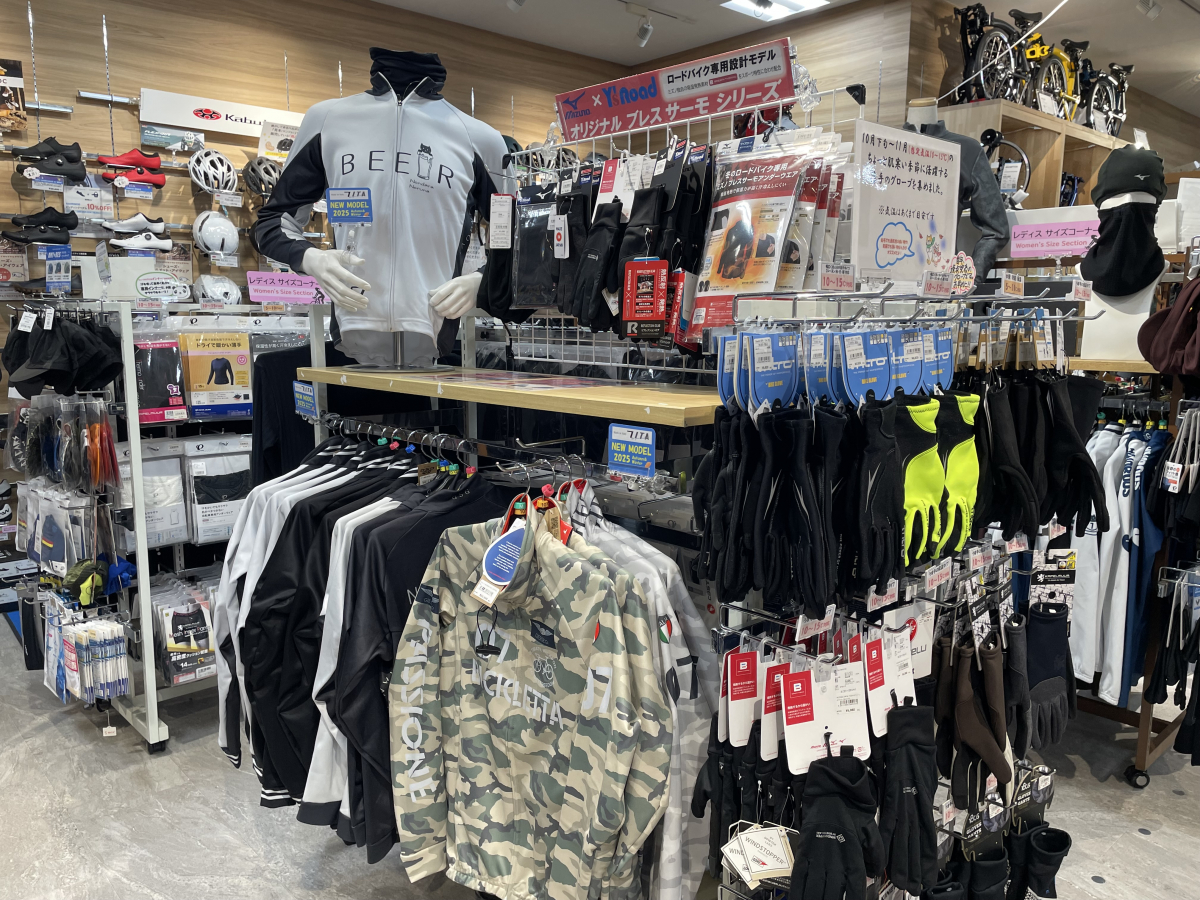 てことで、新橋店サイクルウェアコーナーも、あったかアイテムを前面に押し出したレイアウトに変更済みです。