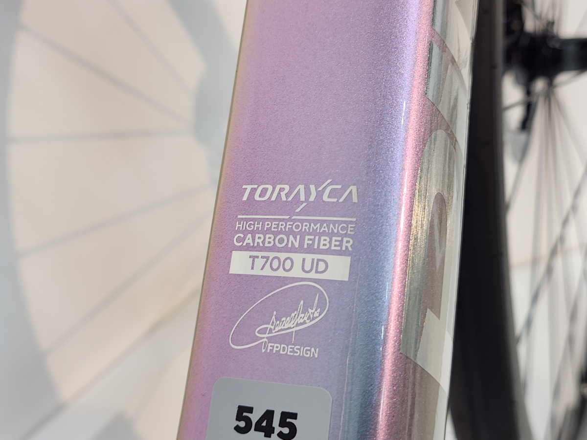 フレーム形状はF9、F7と一緒ですが素材には、東レのT700は反応性と性能を維持しつつ、路面からの振動を吸収する高い減衰性を持つ、カーボンファイバーでレースから、長距離のサイクリングも快適に走る事ができます。