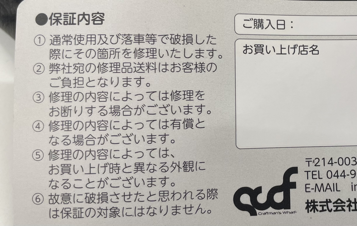 保証の内容も「通常使用および落車などで破損した際にその個所を修理」してくれるといった内容。