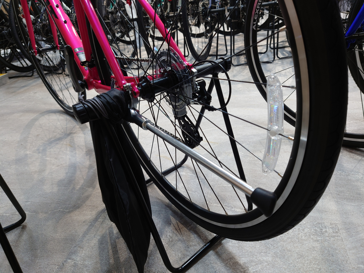 リムブレーキタイプの車体でディスクブレーキ者に比べると制動で若干劣りますが普段使いには十分!しっかりと整備すれば安心です!
