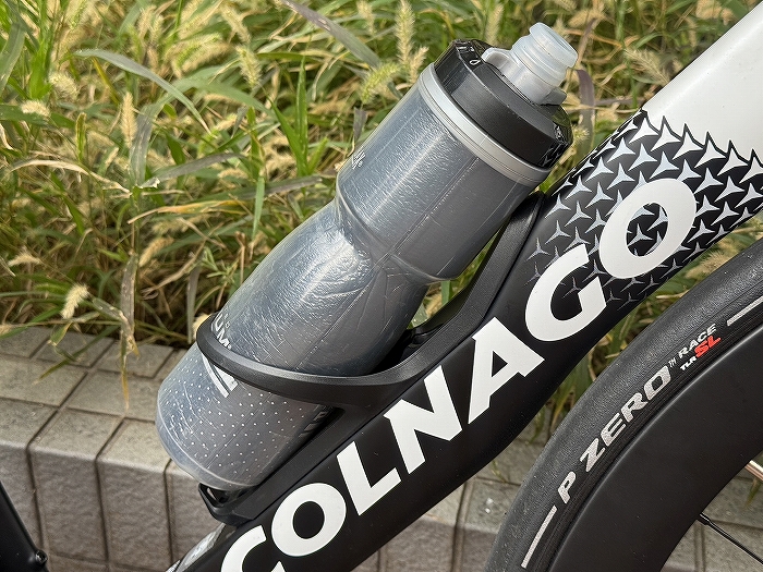 専用のボトルケージはフライボトルにピッタリの設計。