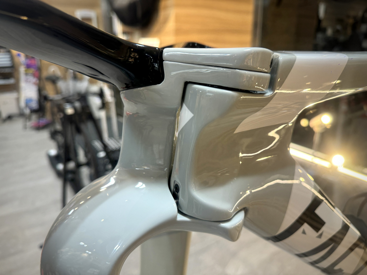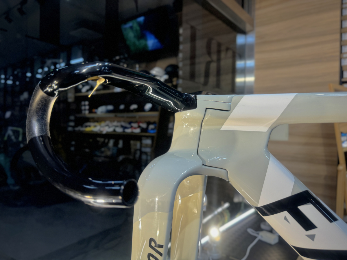 トップチューブとステム部分が完全にツライチになっており、空力性能を極限まで高めています。