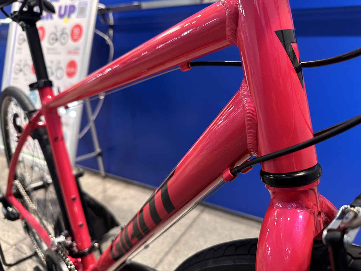 あまり見ないピンク色、かわいくて街にピッタリ合う車体ですね。