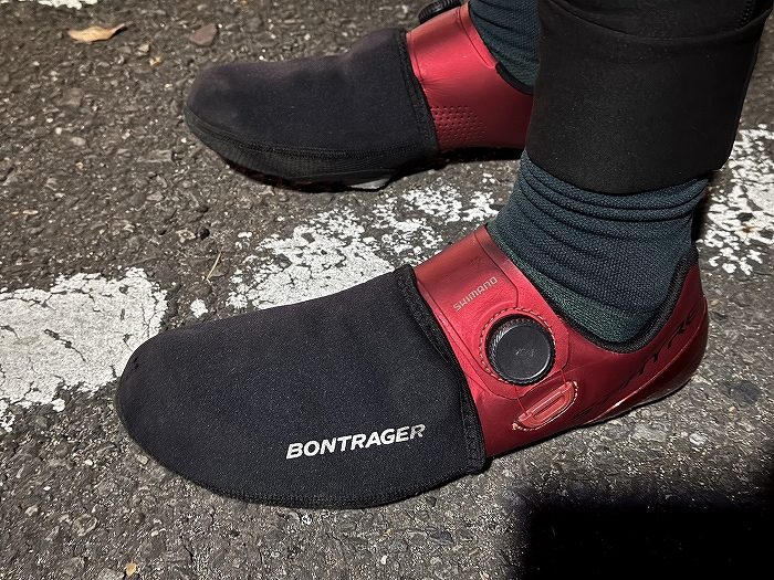 ソックスはデフィートの通年タイプ。自転車用の中ではしっかりした生地感なので秋冬にも最適。蒸れる感じもありません。