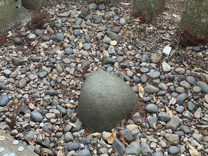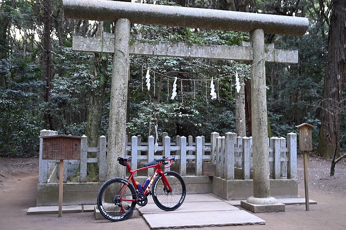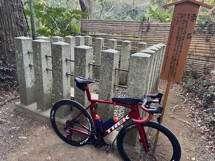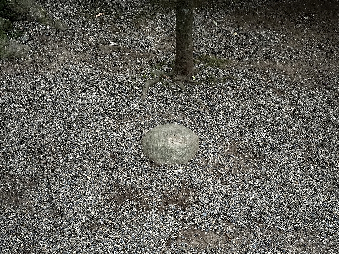 残念ながらビンディングシューズでの参拝は諦めて裏手から要石へ。
