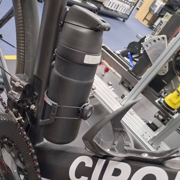 自作マウントでサドルの後ろ側とツライチで取り付けることができました。