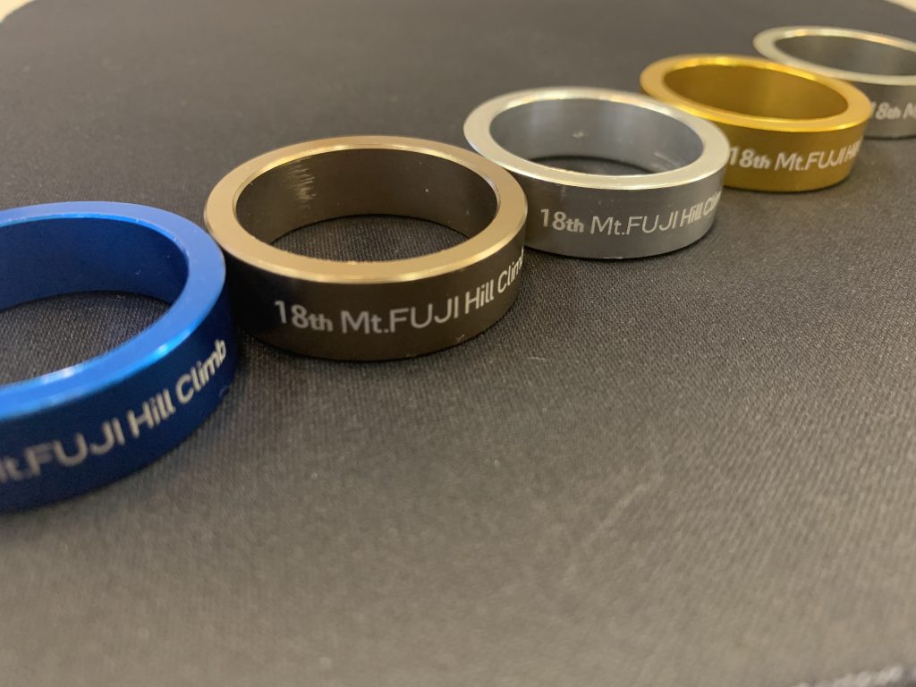 完走タイムごとに、色の違うフィニッシャーリング(コラムスペーサー)を貰う事ができます!