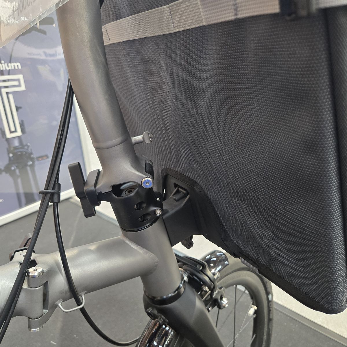 BROMPTONの特徴の一つに、専用バッグの取り付けシステムがあります。