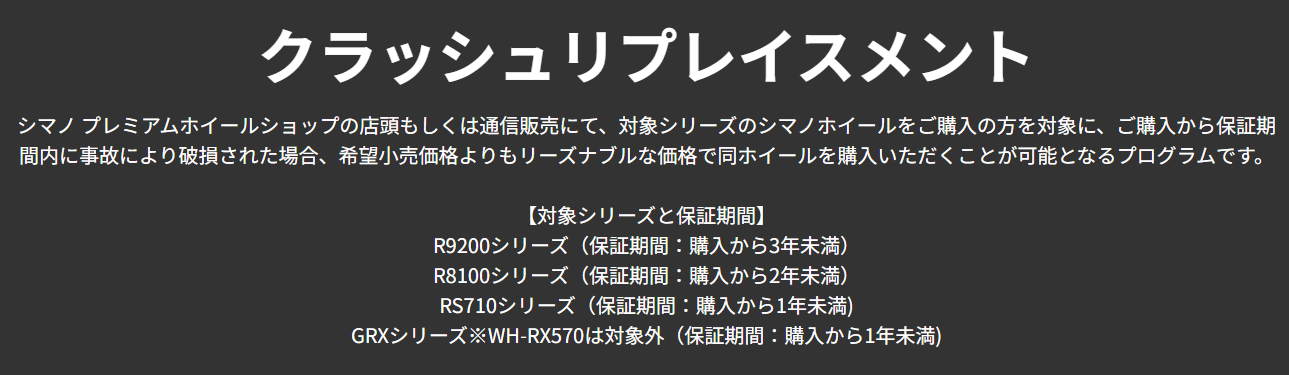 安心してシマノのホイールを購入いただける2つのプログラムを実施しております。