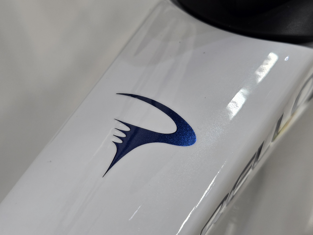 メインカラーはどのモデルでも大人気のパールホワイトで、ロゴが細かいラメが煌めく暗めなマジョーラブルーのようなカラーになっています。