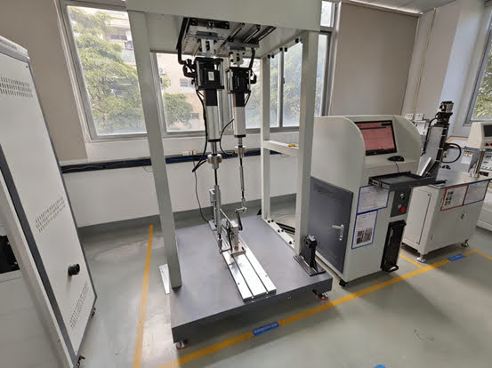 工場独自のテスト方法で200kgf加重時のクランク変形量を計測。