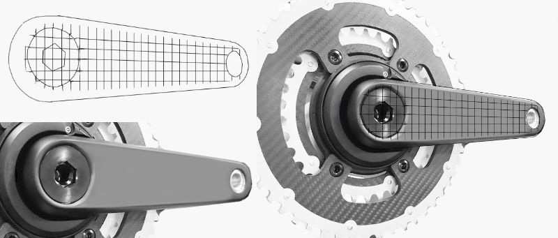 いくつかデザイン案を作り、コンセプトに合致するものを検討しました。オリジナルデザインを含め、あまり凝ったデザインにしてしまうとクランクの金額を引き上げてしまう原因になるので、複数のパターンを検討しました。