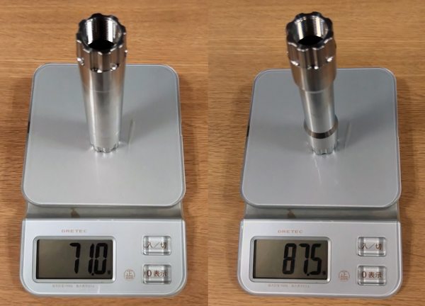 さらに今回は、一般的な外テーパーではなく、加工精度が求められるインナーテーパー構造を採用しました。これにより、同等の剛性を保ちながら、さらなる軽量化が可能となっています。