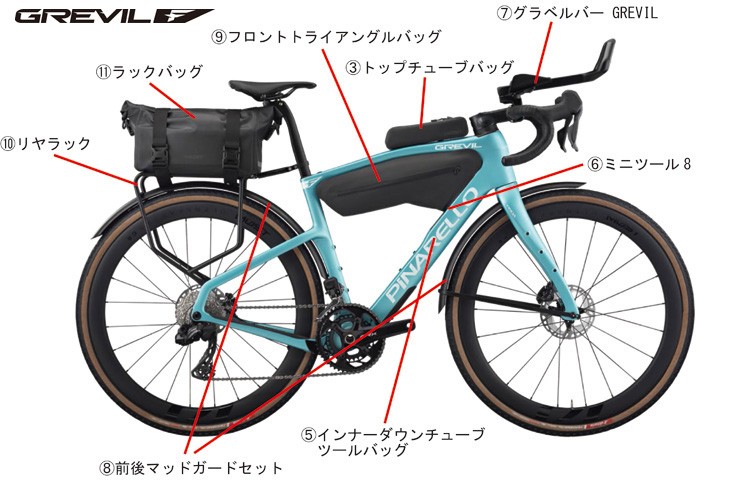 2026年モデルのGREVIL Fにはグラベルライドに必須のアクセサリーを純正でそろえることが可能です。