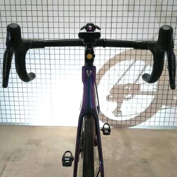 特に最近のエアロロードや軽量レーシングバイクでは、一体型ハンドルを装着することで完成車のような一体感のあるデザインになります。