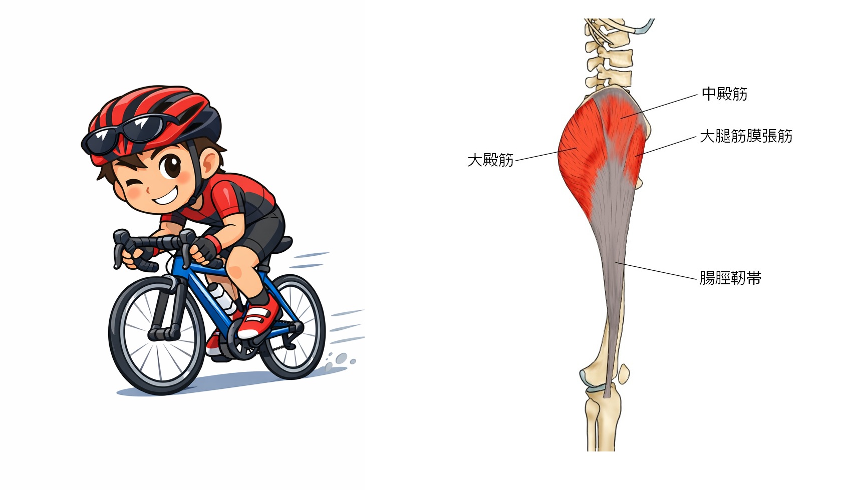 お尻の筋肉と繋がってるので、お尻周りの筋肉が硬くなると腱も硬くなり擦れやすくなります。