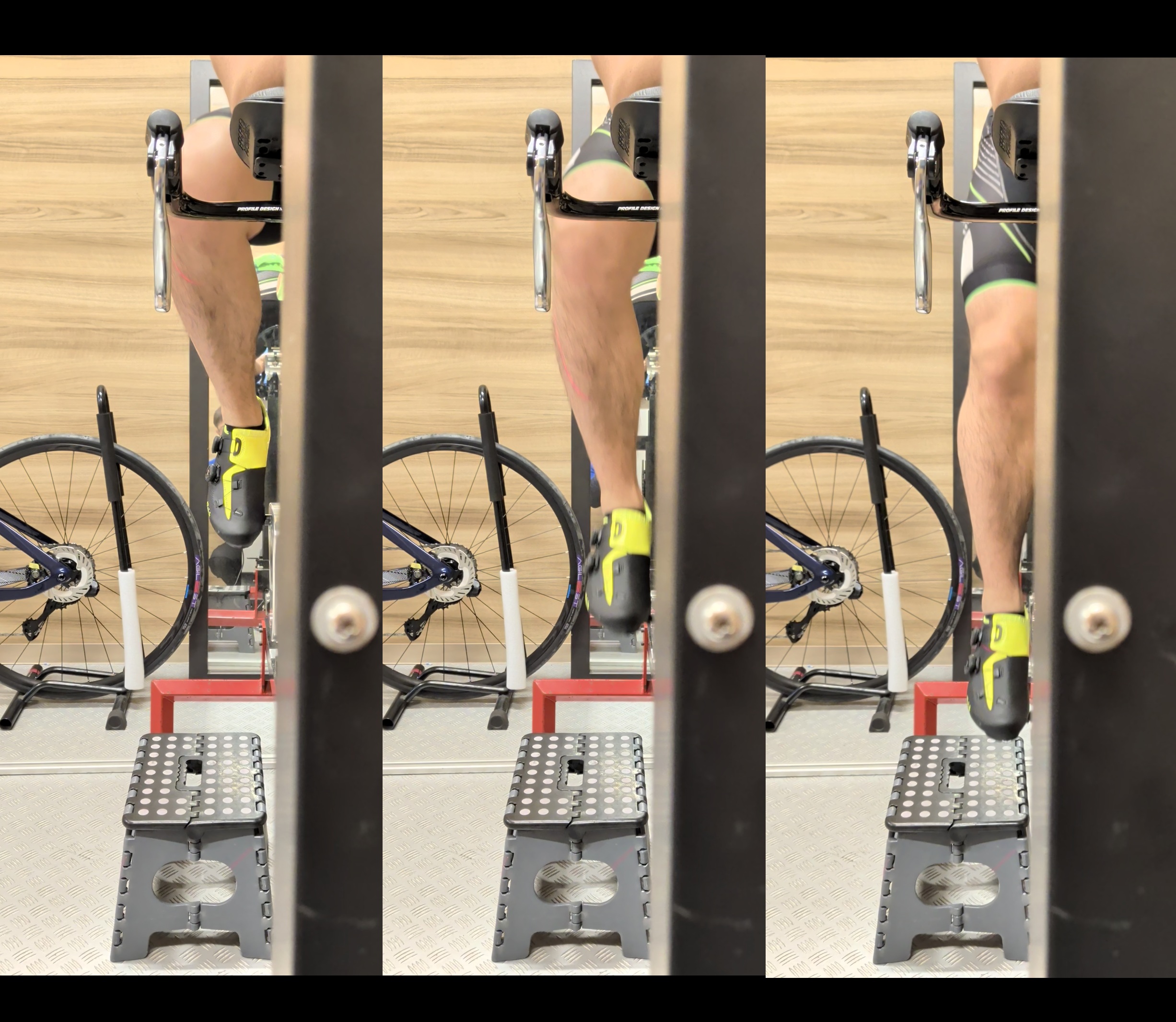 ↓フィッティングしたお客様の膝軌道を前から見たところです。左が上死点付近→下死点へと踏み込んでいます。