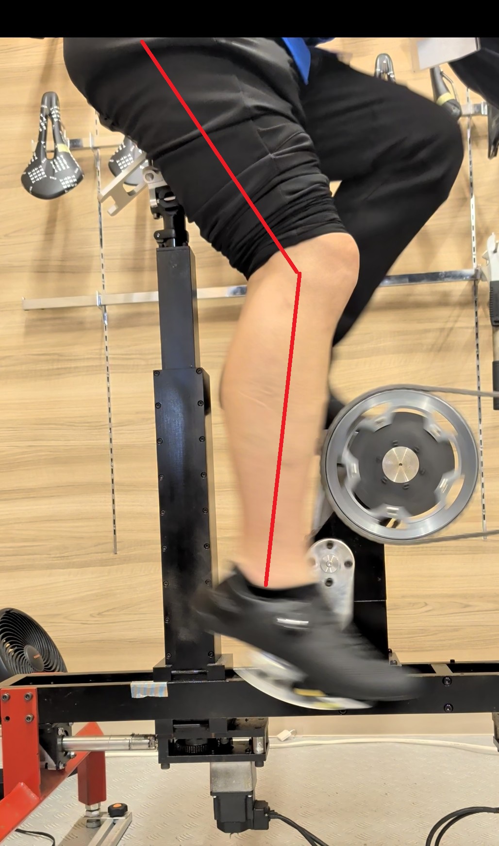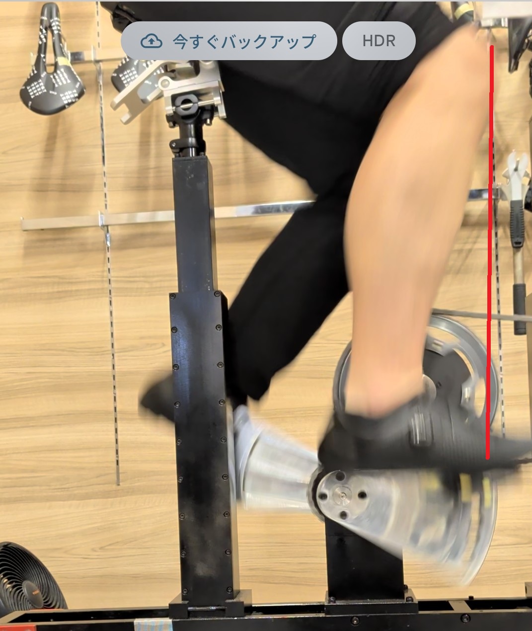 ペダル軸と膝の皿が垂直かチェックします。