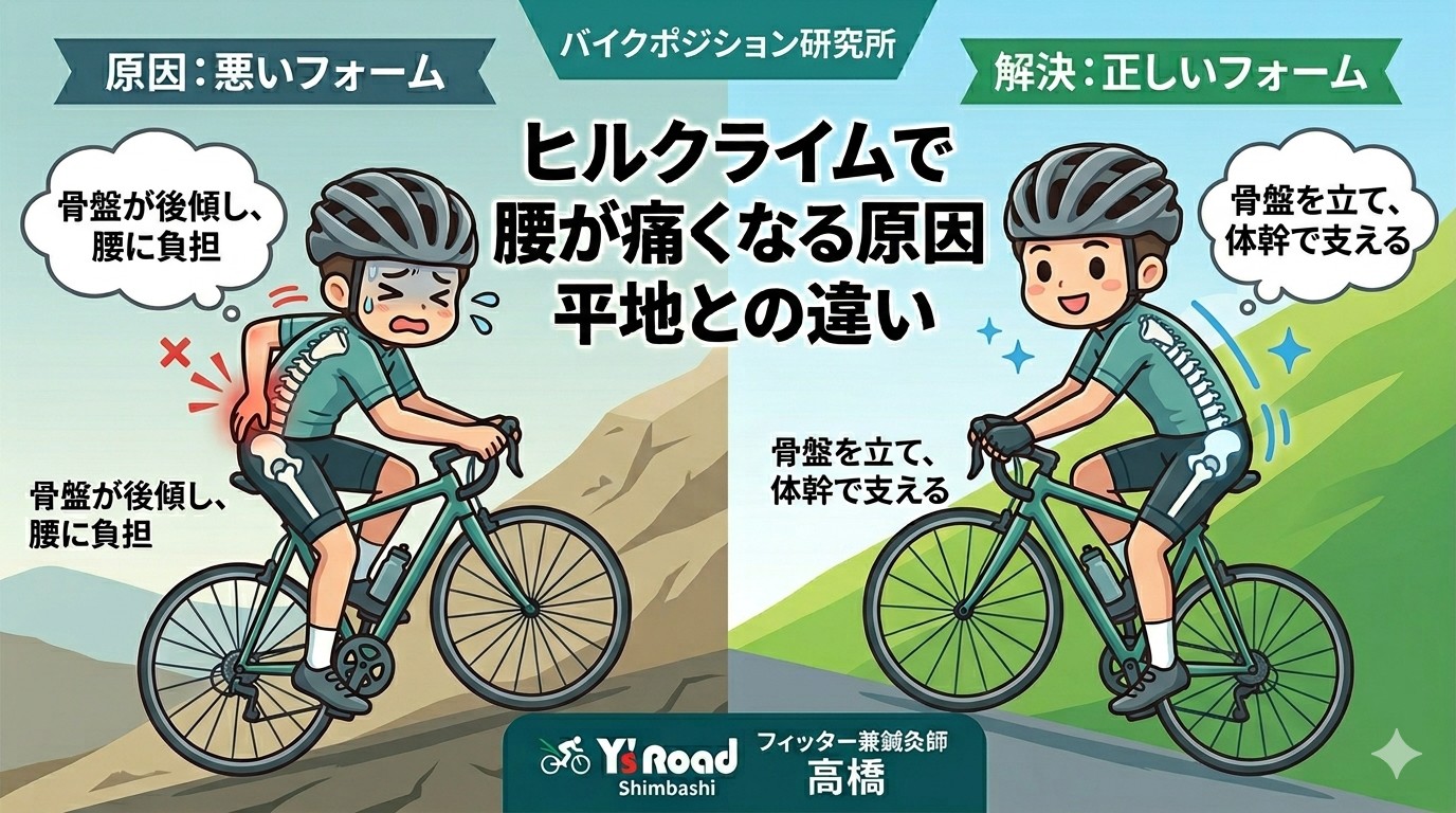 ヒルクライムで腰が痛くなる原因と平地との違い