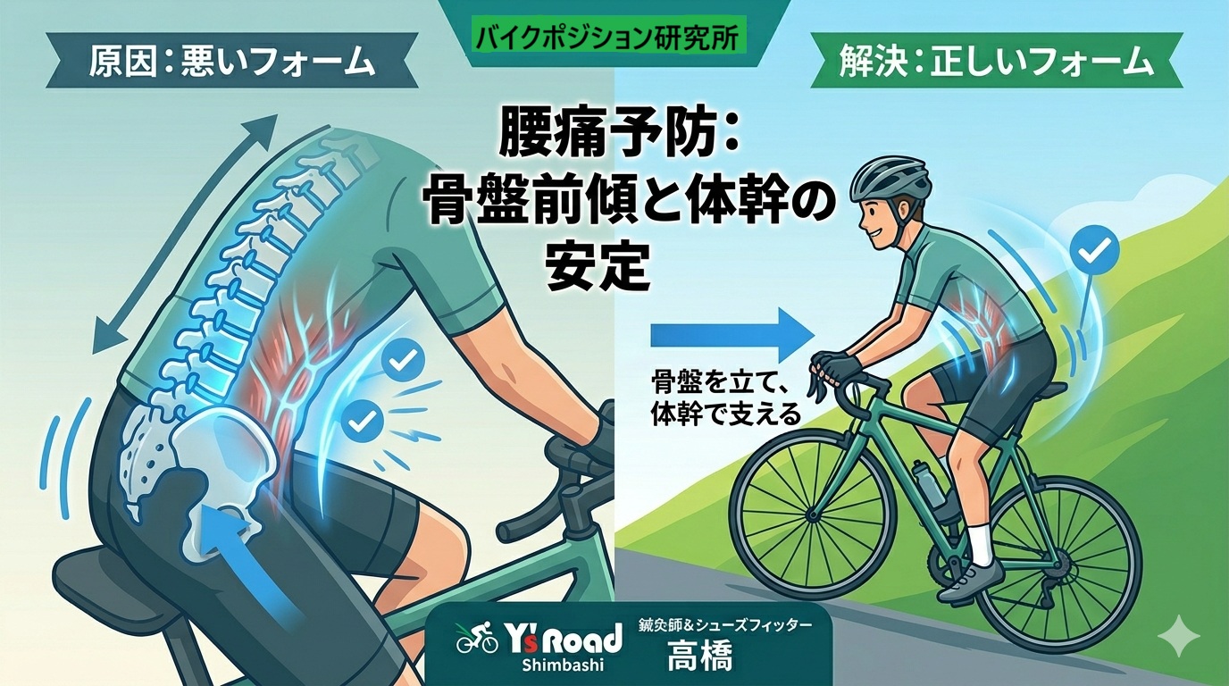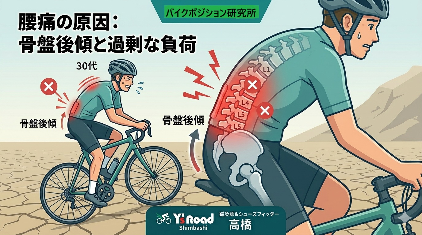 ロードバイク/トライアスロン バイクに乗っていて抱えやすい【腰痛】について、数回のシリーズで掘り下げます。