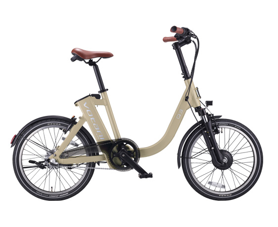 乗り降りしやすくスカートやワイドパンツでもまたぎやすい、低床設計のフレーム形状です。適応身長は約144cm~。VOTANI Q5(147cm~)、BESV CF1 LENA(145cm~)よりさらに低い身長に対応するのは、20インチ小径ホイールを使っているからです。