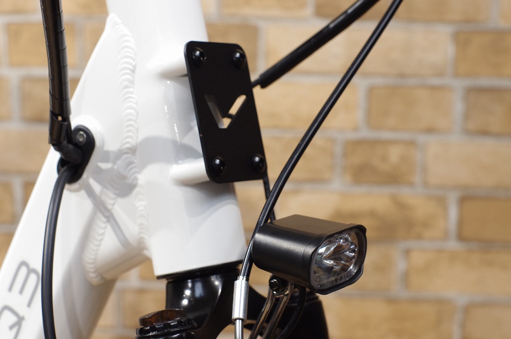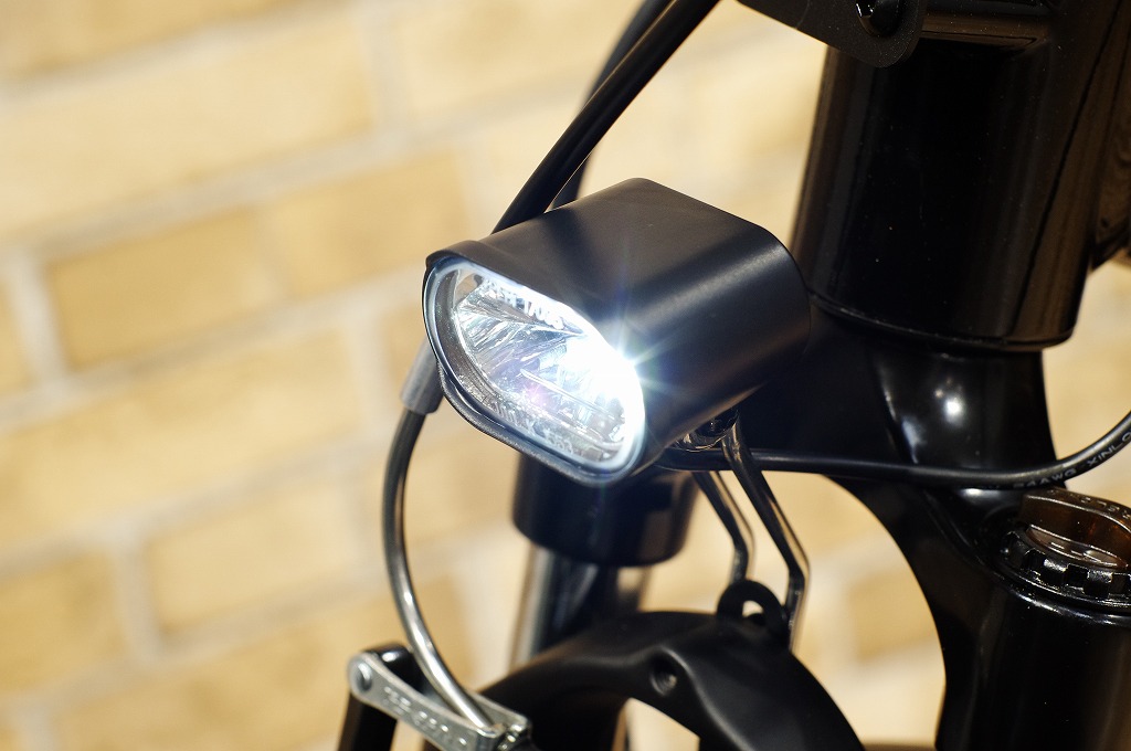自動点灯のヘッドライト。電源にはアシスト用のバッテリーを使います。