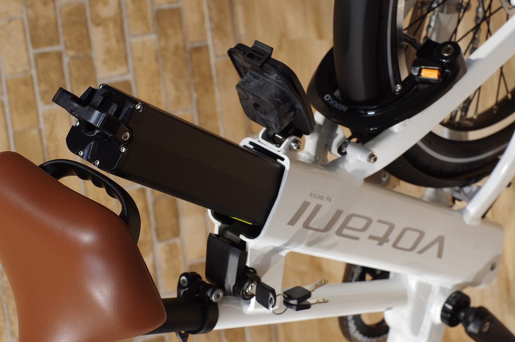 このバッテリー収納部のロックに使うキーはサークル錠と兼用です。
