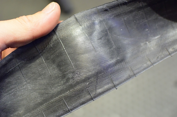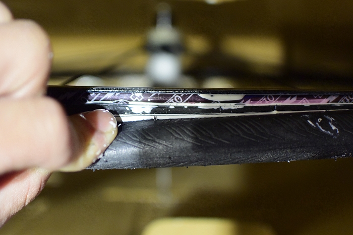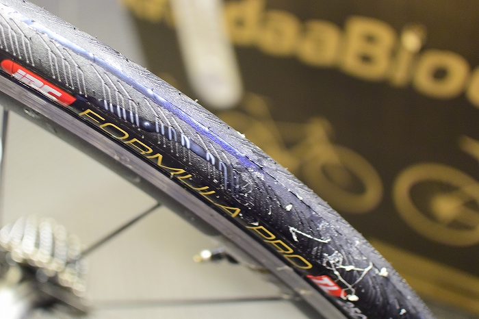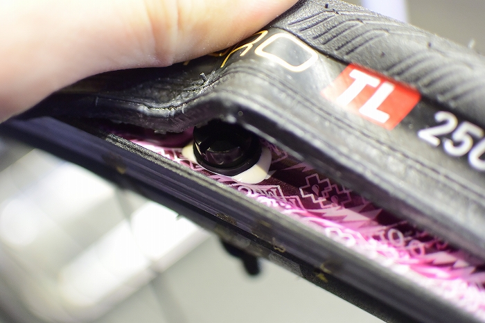このタイヤのようにいかにもゴムっぽいタイヤは相性がいい気がしますが、コットンケーシングなど繊維っぽい表面のタイヤには不向きなものもあるようです。