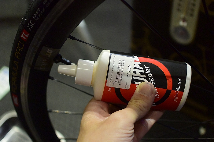 チューブレスタイヤの必需品といえば空気漏れを防ぐシーラント。