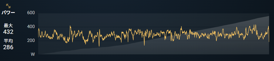 いつもは序盤から全力ですが、今回はペース配分のテストも兼ねて序盤セーブしてFTPペース、勾配がきつくなってきたら全力で走ってみます。