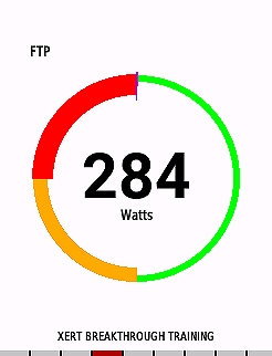 GARMINに入れている自動FTP計測アプリでは284W PWR4.89と出ました!