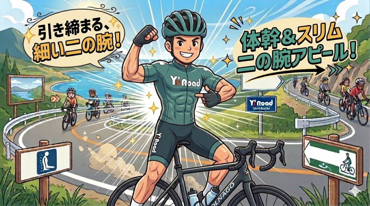 意外かもしれませんが、ロードバイクは二の腕(上腕三頭筋)のシェイプアップにも有効です。
