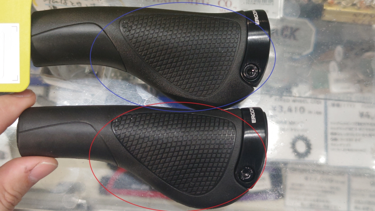 写真のように若干の差であればいいのですが、120㎜以下のショートグリップが標準でついている場合がありますので、こちらも実際の自転車で合わせた方がオススメです。