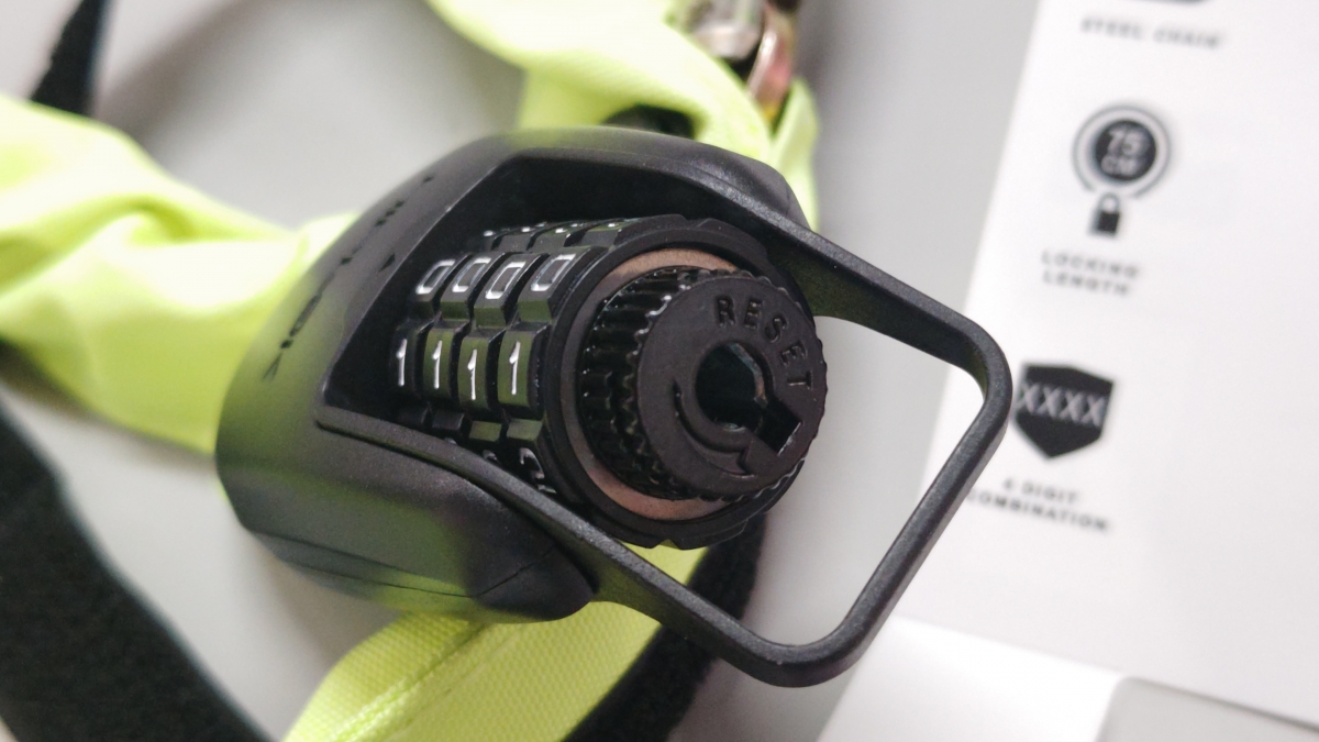 セキュリティ性の高い長さ75cmのチェーンロック。4桁かつ0~9の数字の組み合わせで自由に番号を変える事の出来るダイヤル式。いつでも番号を変える事が出来るので便利です。