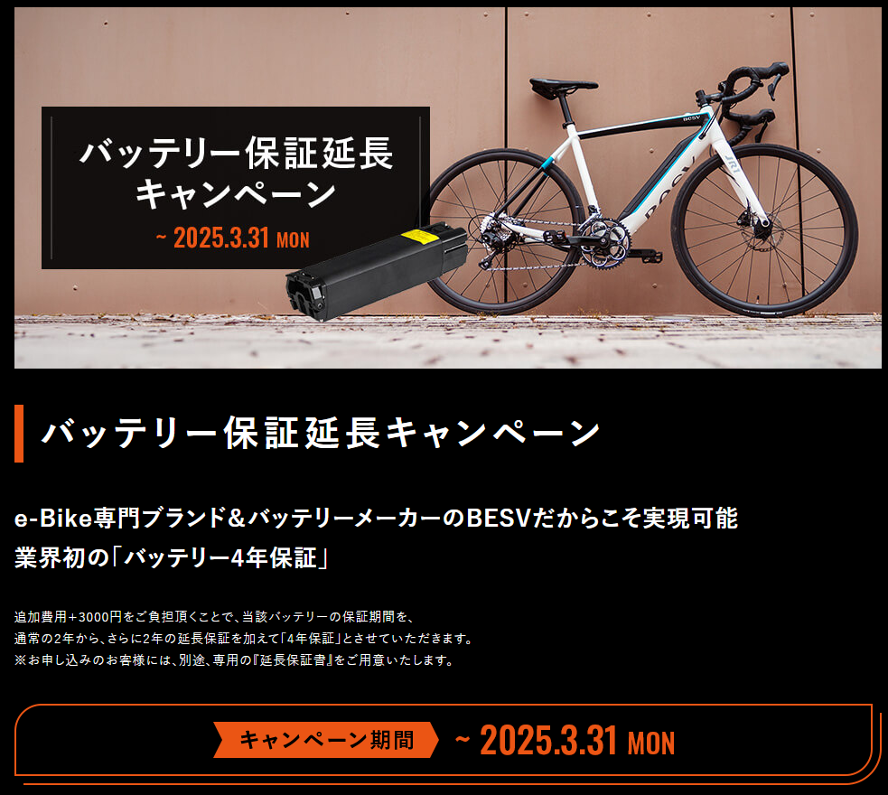 当店で人気ナンバーワンのE-BIKEブランド『BESV』から春のキャンペーン情報です。