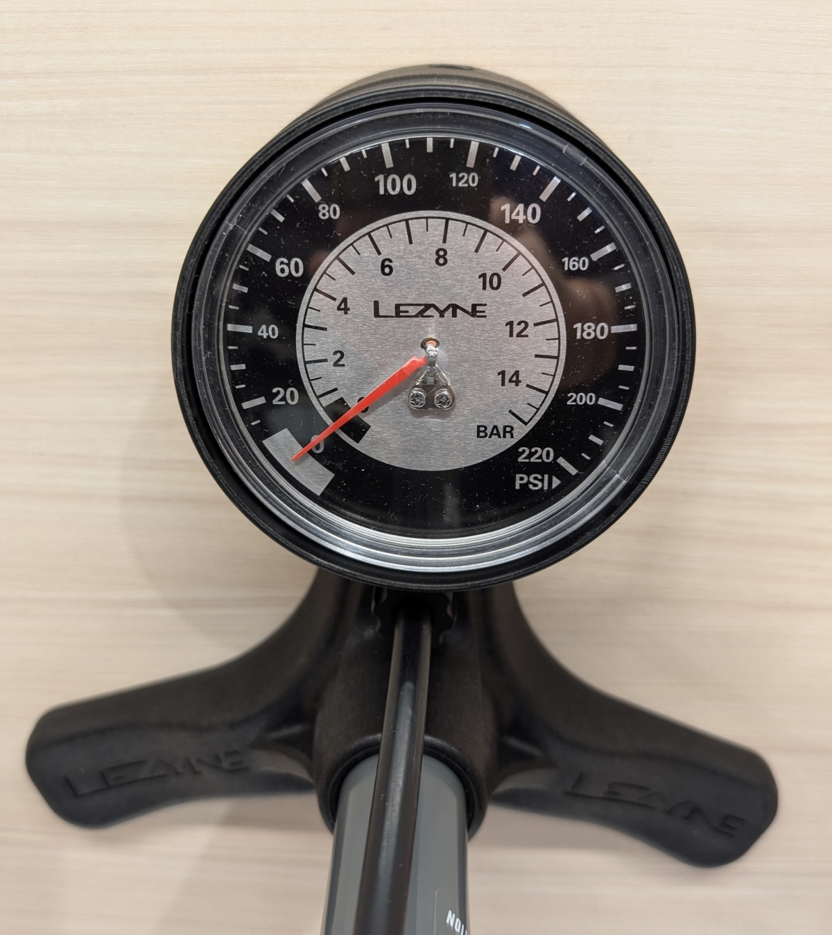 上がSPORT GRAVEL DRIVEでMAX100psi、下がSPORT FLOOR DRIVEでMAX220psiが最大空気圧になります。グラベルやMTB用のタイヤ、チューブレスタイヤではあまり高圧にしないので、低圧対応で本体のパイプが少し太いSPORT GRAVEL DRIVEの方が1回のストロークで注入される空気量が多くポンピングの回数が少なくて済みます。