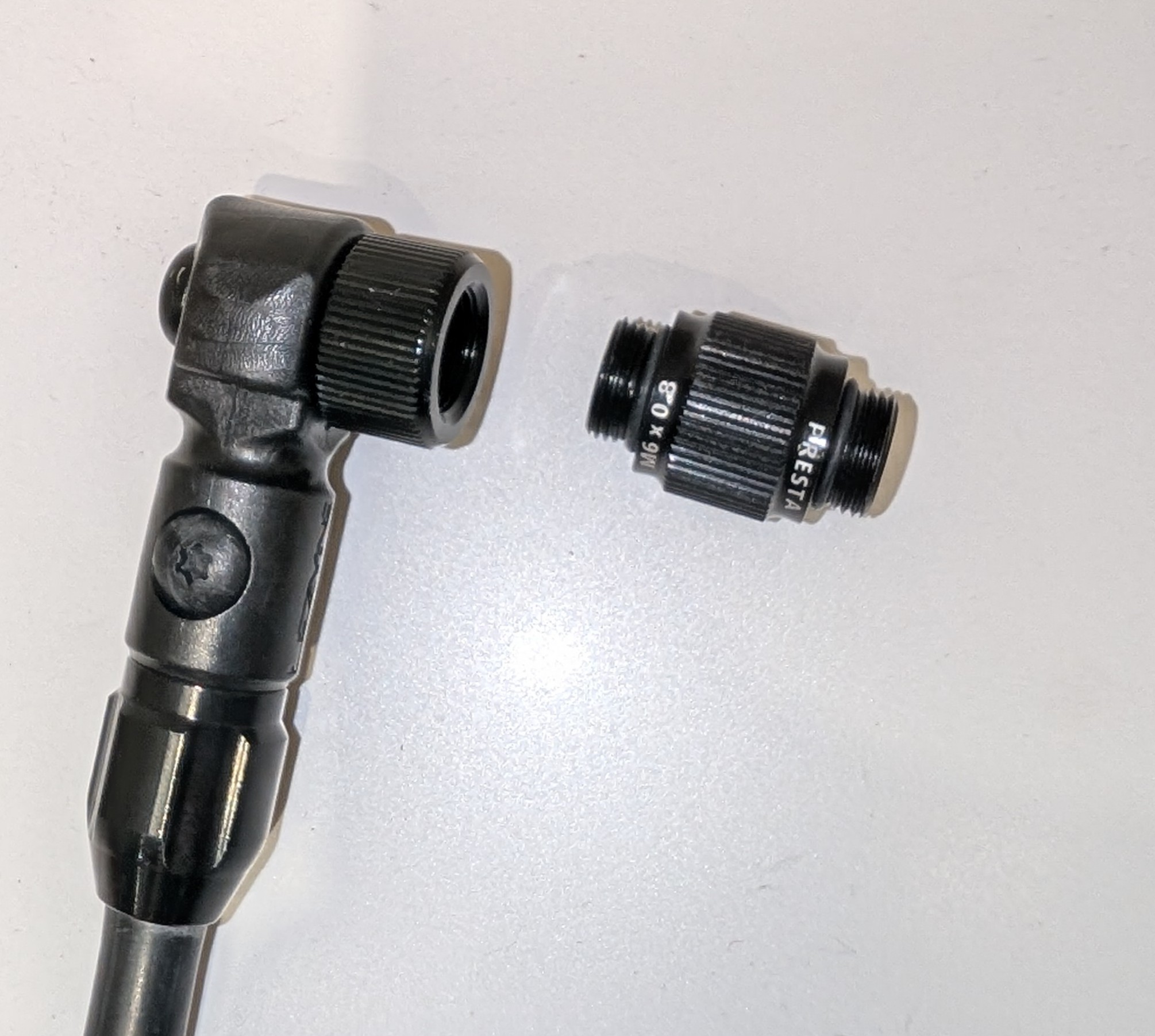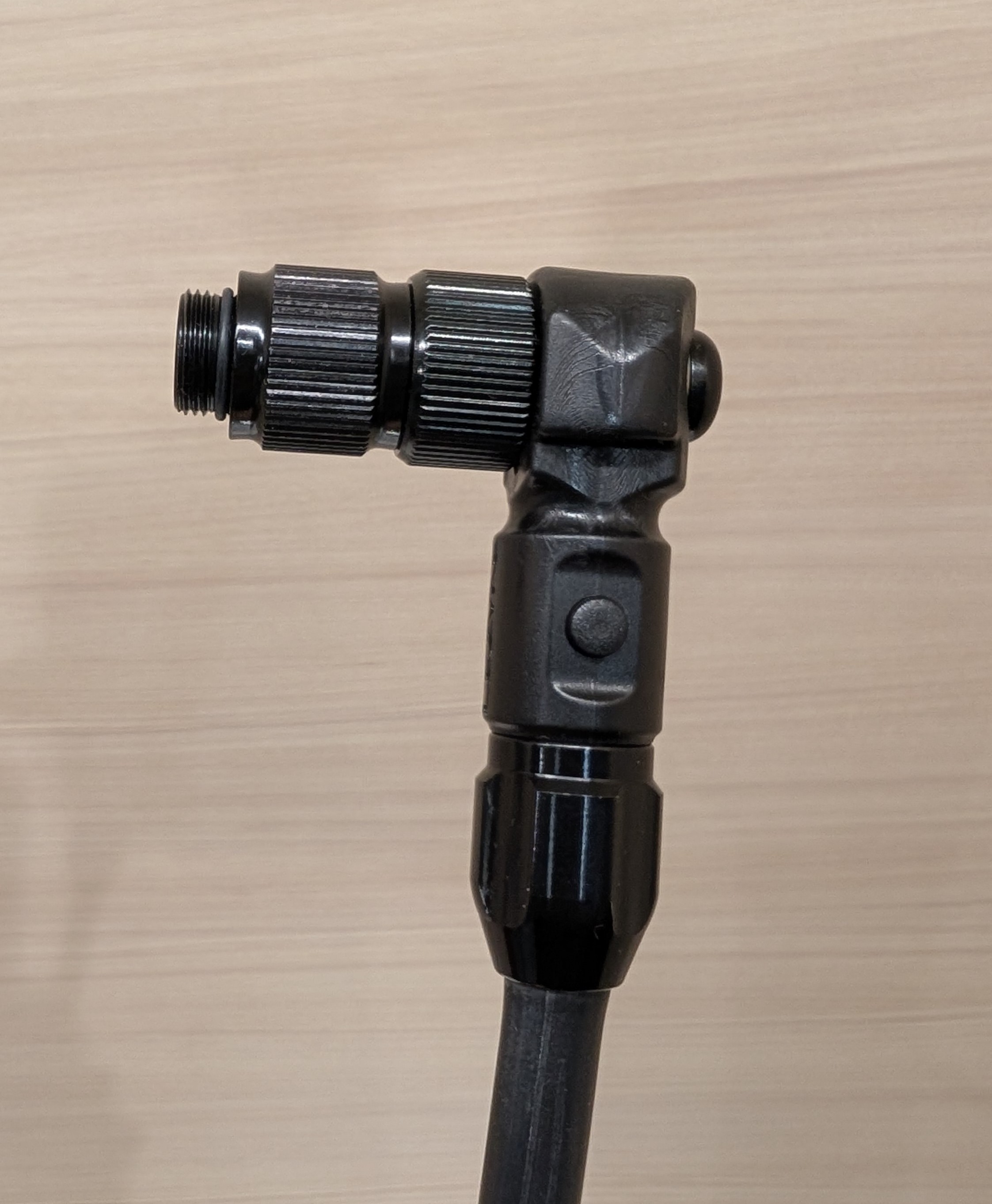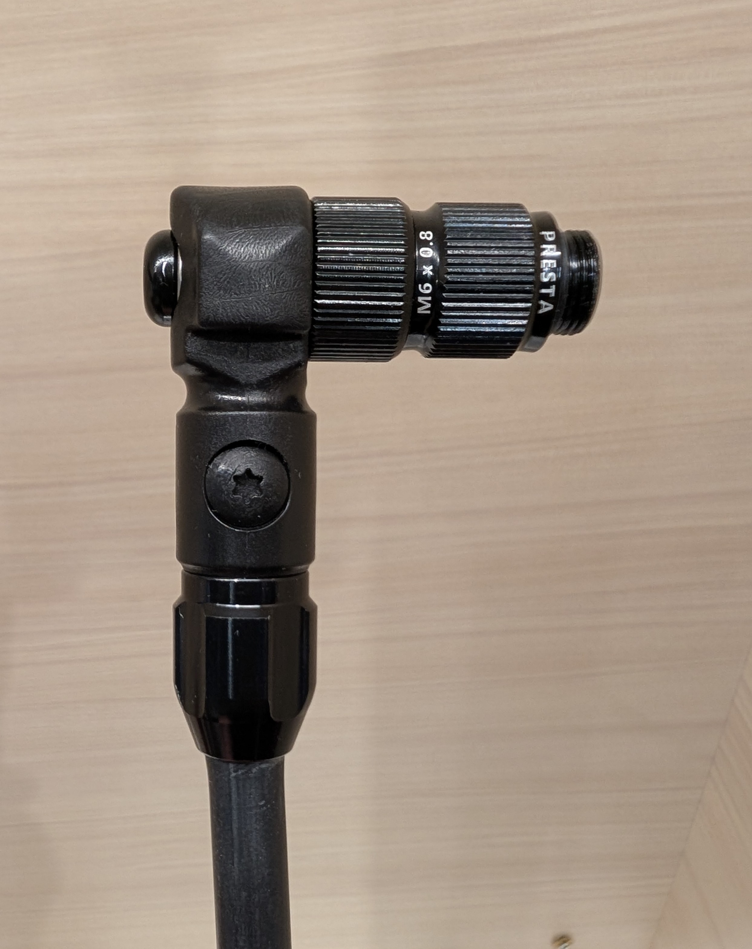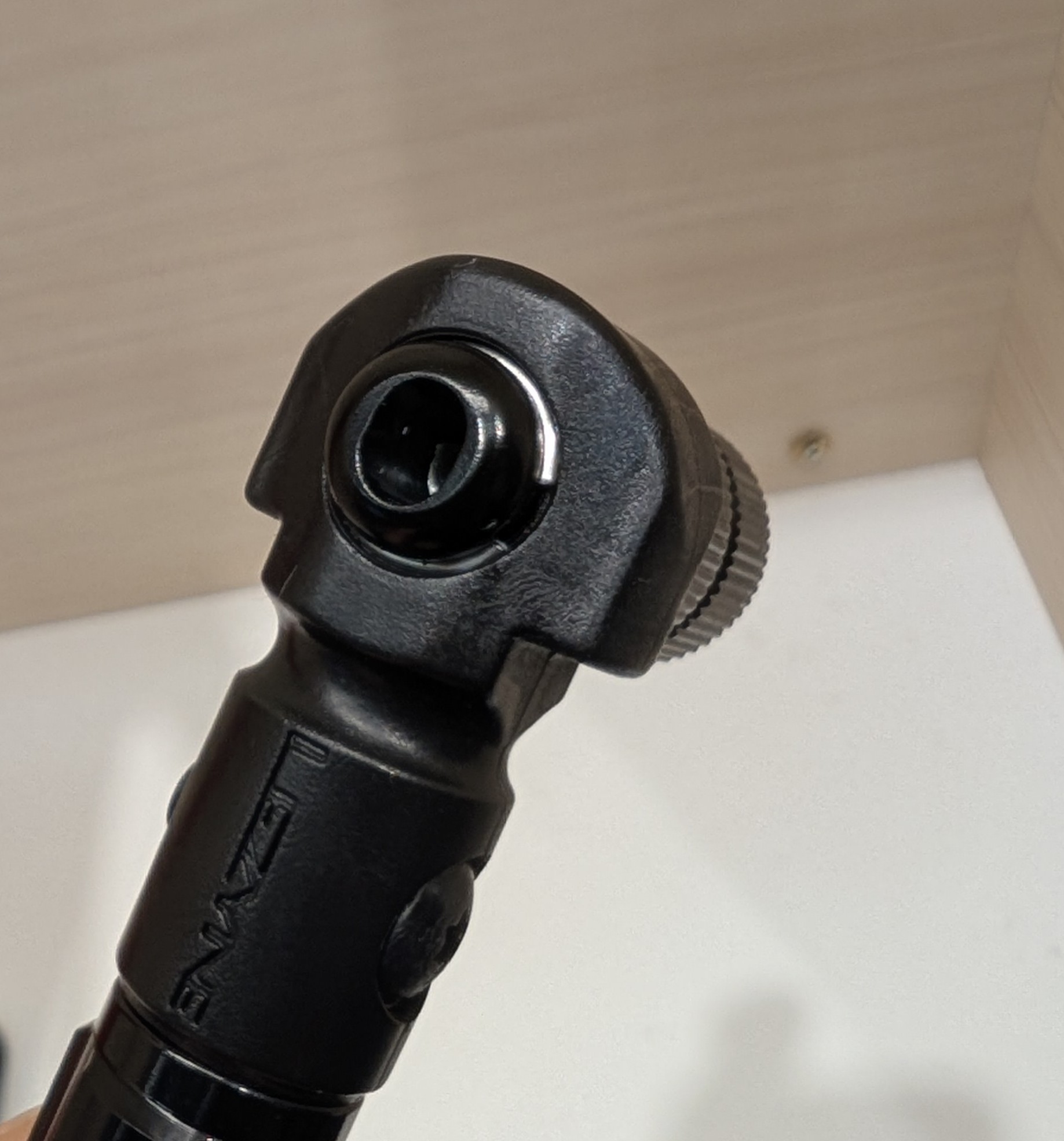 ヘッドの先端部分は外れる構造で、通常の仏式バルブに空気を入れる形状とバルブコアを外した状態で空気を入れられる形状になってます。チューブレスタイヤでビードを上げる時にはバルブコアを外した状態で空気を入れられる側を使用します。バルブコアがない状態だと空気を入れる時に抵抗が少なくポンピングができます。