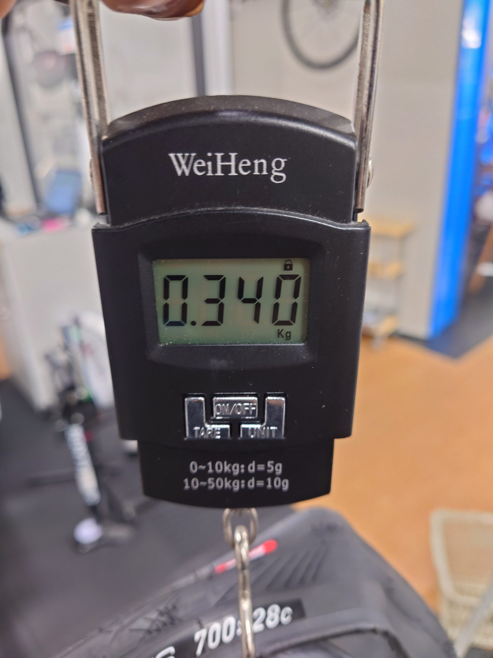 では実際にどれくらい違うのか・・・まずは元々付いてるタイヤの重量は!