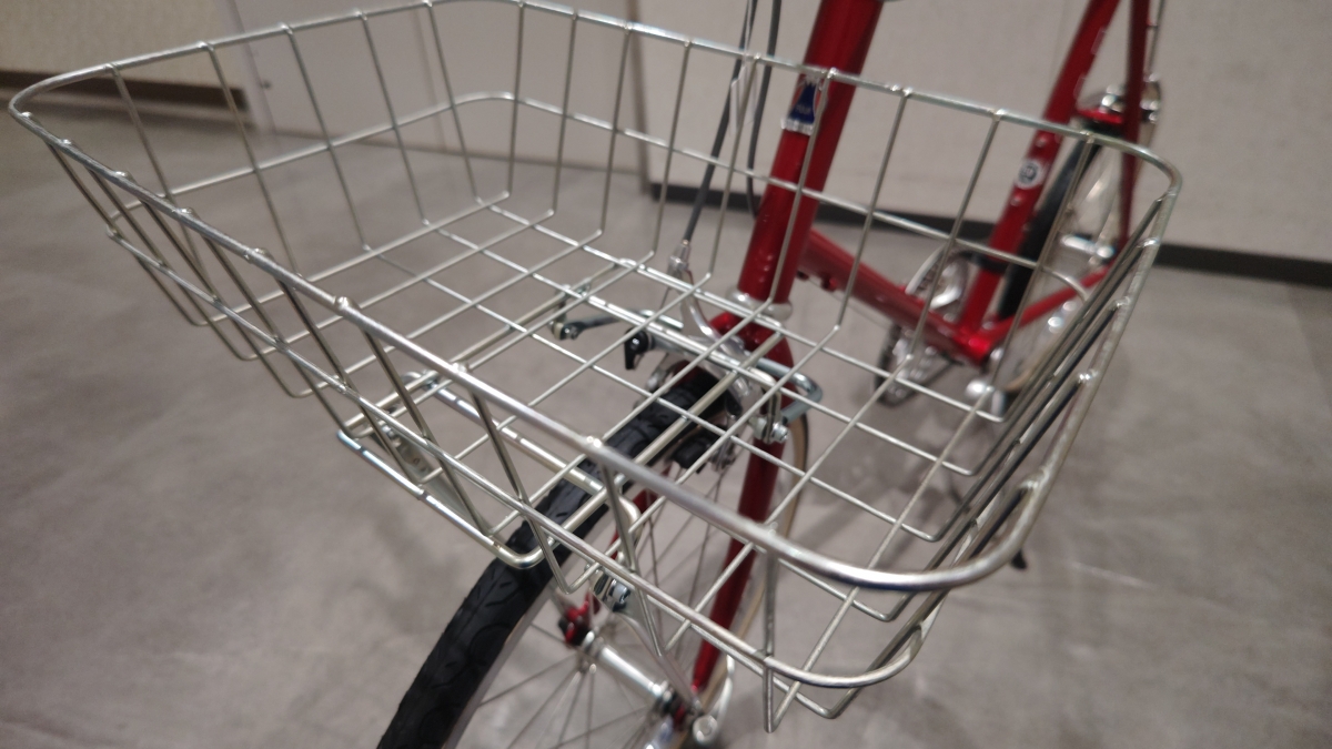 通勤や通学、お買い物にあると便利な前カゴを取り付けました。ちょうどいい感じのサイズ感とメッキカラーで色味もマッチしています。