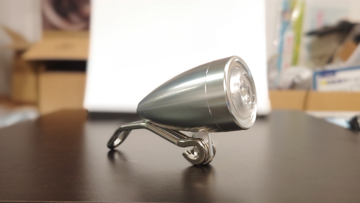 ふたつめは台湾発の「KILEY」から砲弾型ライト。一昔前の自転車では当たり前の砲弾型ライトですが、しっかりと充電式になっていて付属のケーブルでUSB充電が可能になっています。取り外す際に先端部分を回すのですが、滑らかにくるくると回るので造りの精緻さが伺えます。こちらはステーて固定するタイプなので、自転車との相性次第では取付出来ない場合があります。