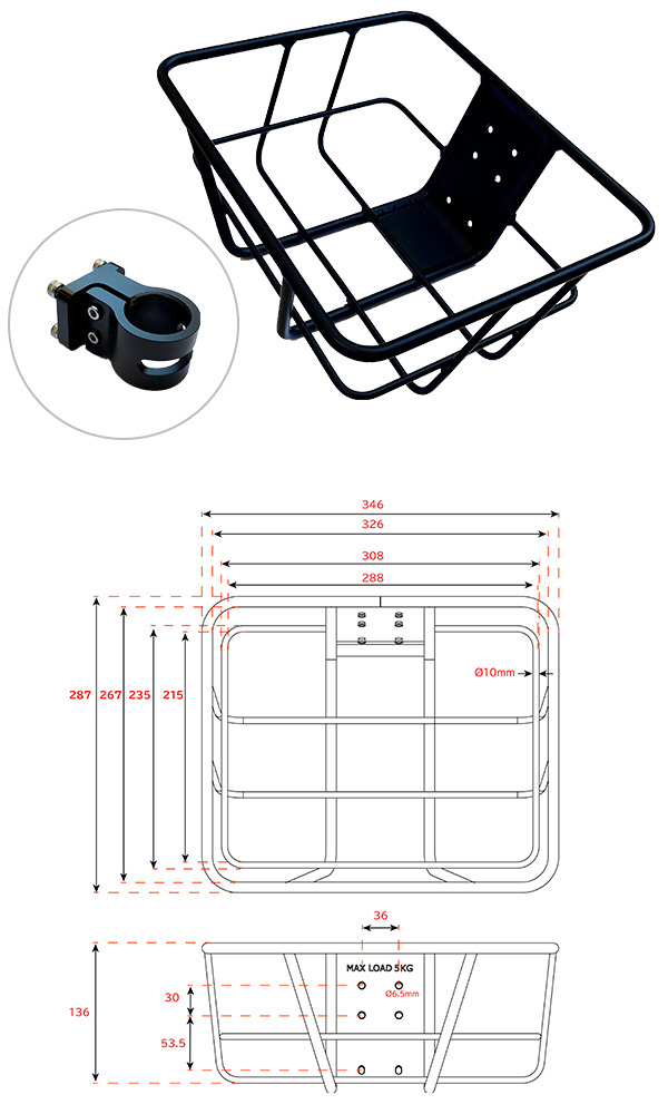 当店で人気ナンバーワンのE-BIKEであるBESV PSA1用の純正フロントバスケットセット。耐荷重は5kgとそこまで大きくはありませんが、フロントバスケットはあまり荷物を載せすぎてもハンドリングに影響が出やすいので、これくらいで十分でしょう。少し浅めですが枠の大きさはしっかりあるので、バッグやリュックを乗せても問題なさそうです。