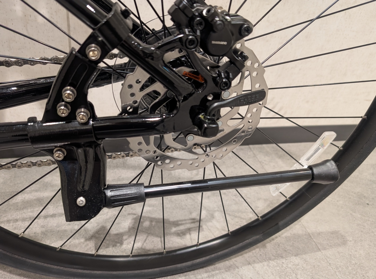 ブレーキはキャリパーとローターともにシマノ製です。キックスタンドは標準装備です。RAILシリーズにはサイドキックスタンドが標準装備されています。付属のキックスタンドはサイドタイプですが、センタースタンドを取付ける事も可能です。