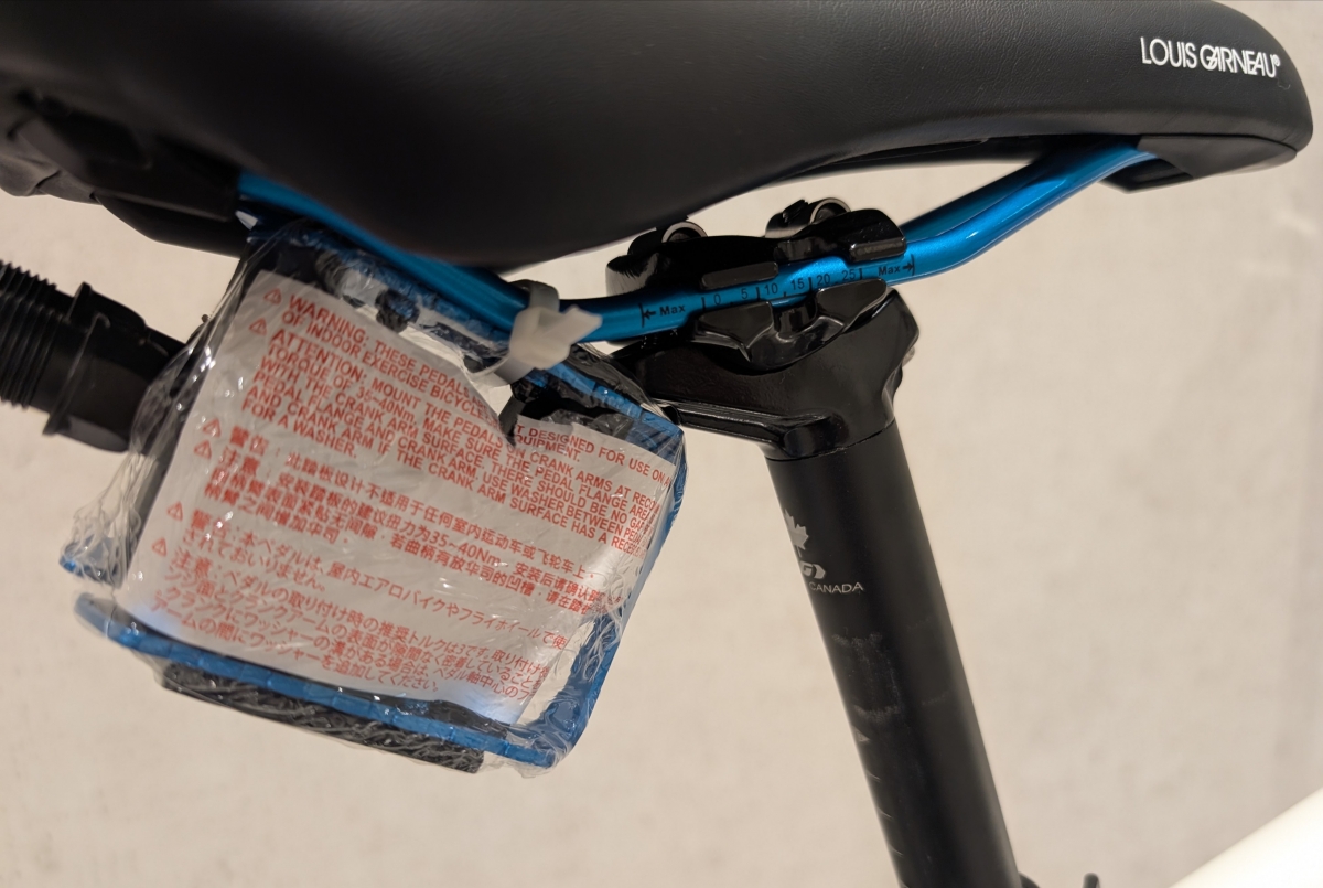 IMG_20250513_155205[1]トップキャップに続きちょっとしたオシャレポイントですが、サドルレールとペダルもブルーとなっております。更に追加でグリップやサドルも同系統色にしてみるのも面白いですよ!