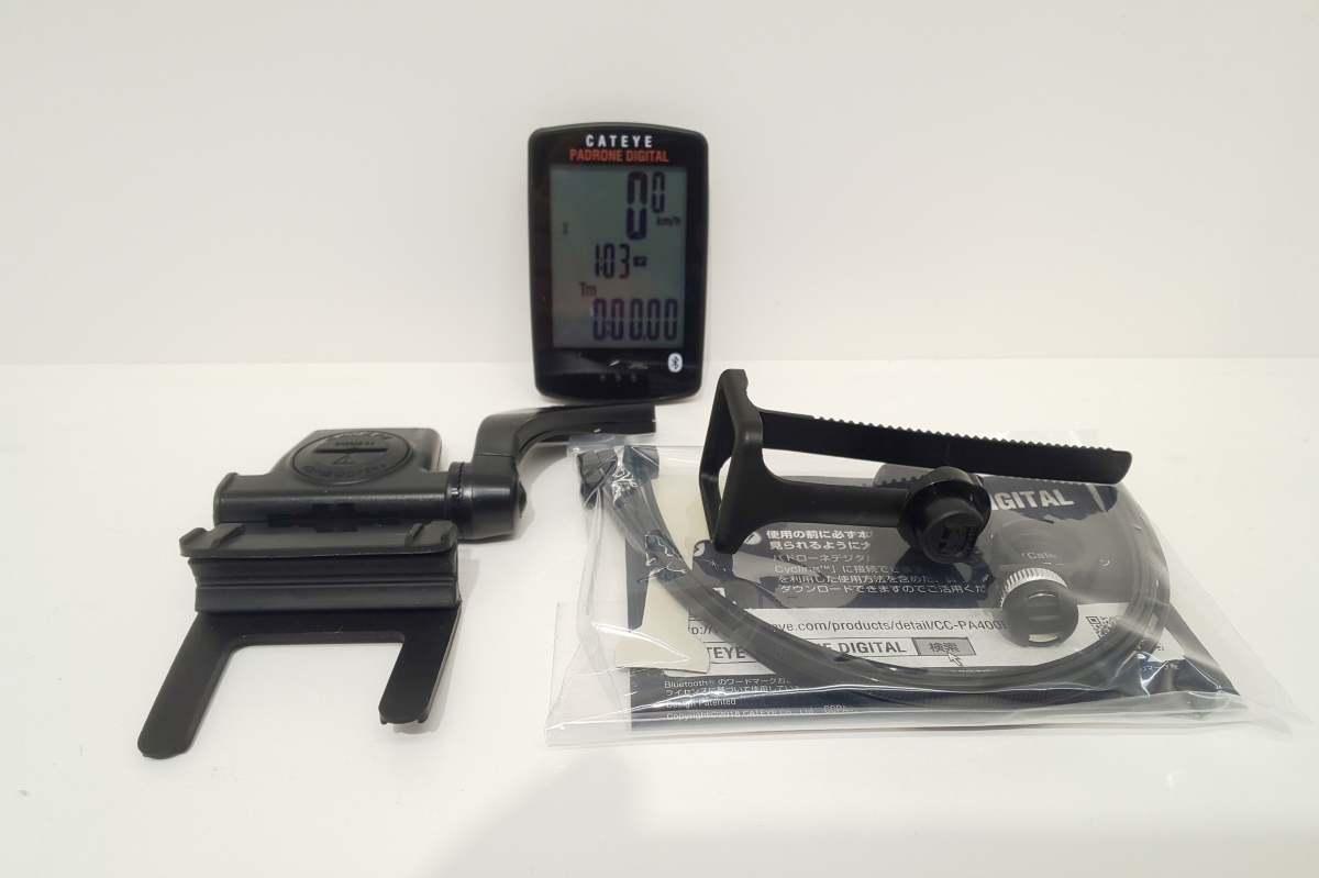 パドローネデジタルはブルートゥース対応で付属のスピードケイデンスセンサーの同期、オプションとして心拍センサーの増設が可能です(※他社のセンサーでの動作を保証しているものではございません)。GPS機能や走行ログ、目標スピードや心拍などの機能はありませんが、故にシンプルで使いやすいサイクルコンピューター(以下サイコン)です。設定は本体の他、スマートホンの専用アプリでもできます。