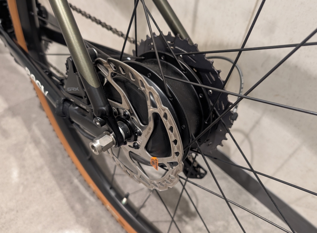 ブレーキはシマノGRX、小型軽量なモーターは後輪にあります。安定したブレーキとアシストモーターで快適な走りを楽しめます!