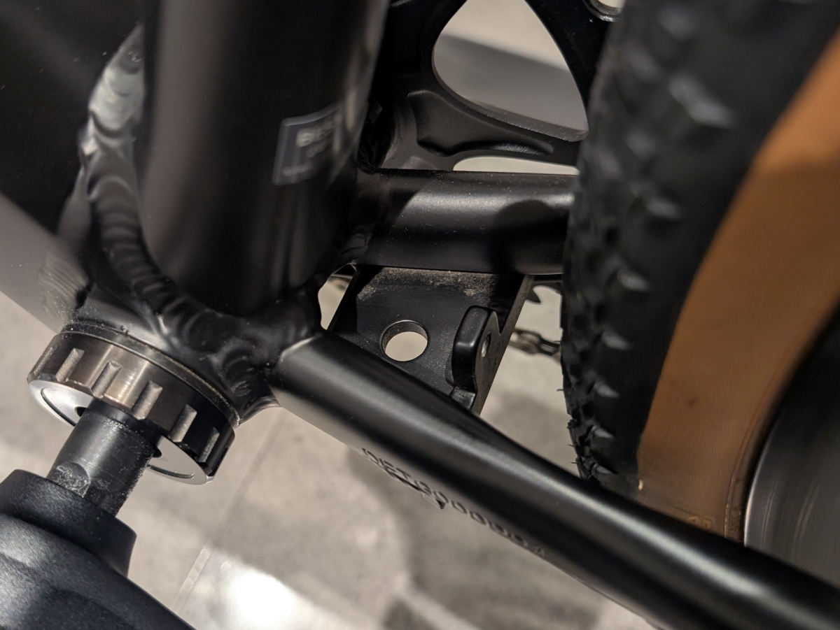 BBの後ろにセンタースタンドの取付け台座があり、専用のスタンドが取り付け可能です!専用オプションは前後フェンダー、リヤキャリア等があり、色々な使い方に対応できるようになっています。